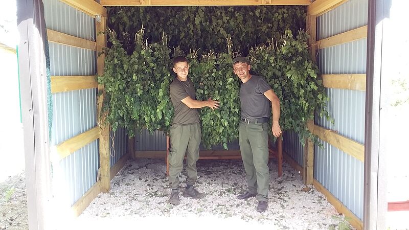 Щоб лісовим мешканцям було чим підгодовуватись взимку, підприємство турбується про це вже тепер. Саме червень та липень є найкращим періодом для заготівлі кормових віників, сіна.